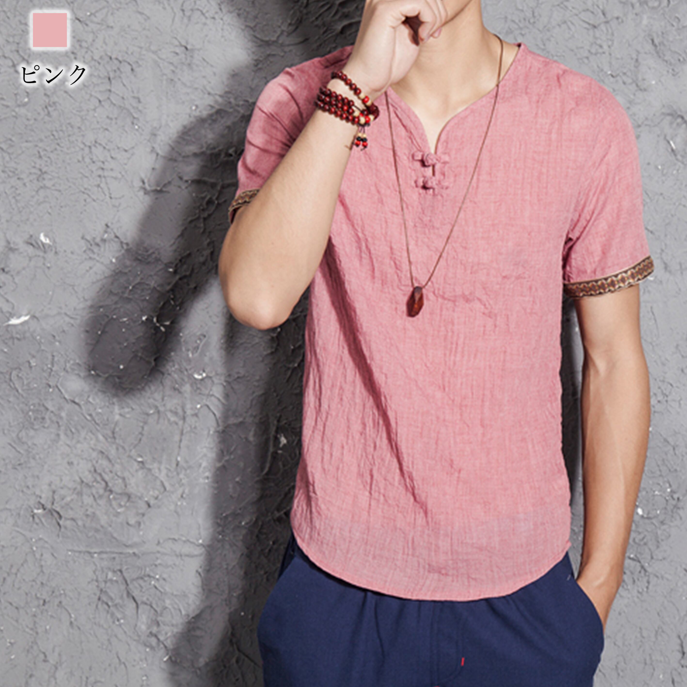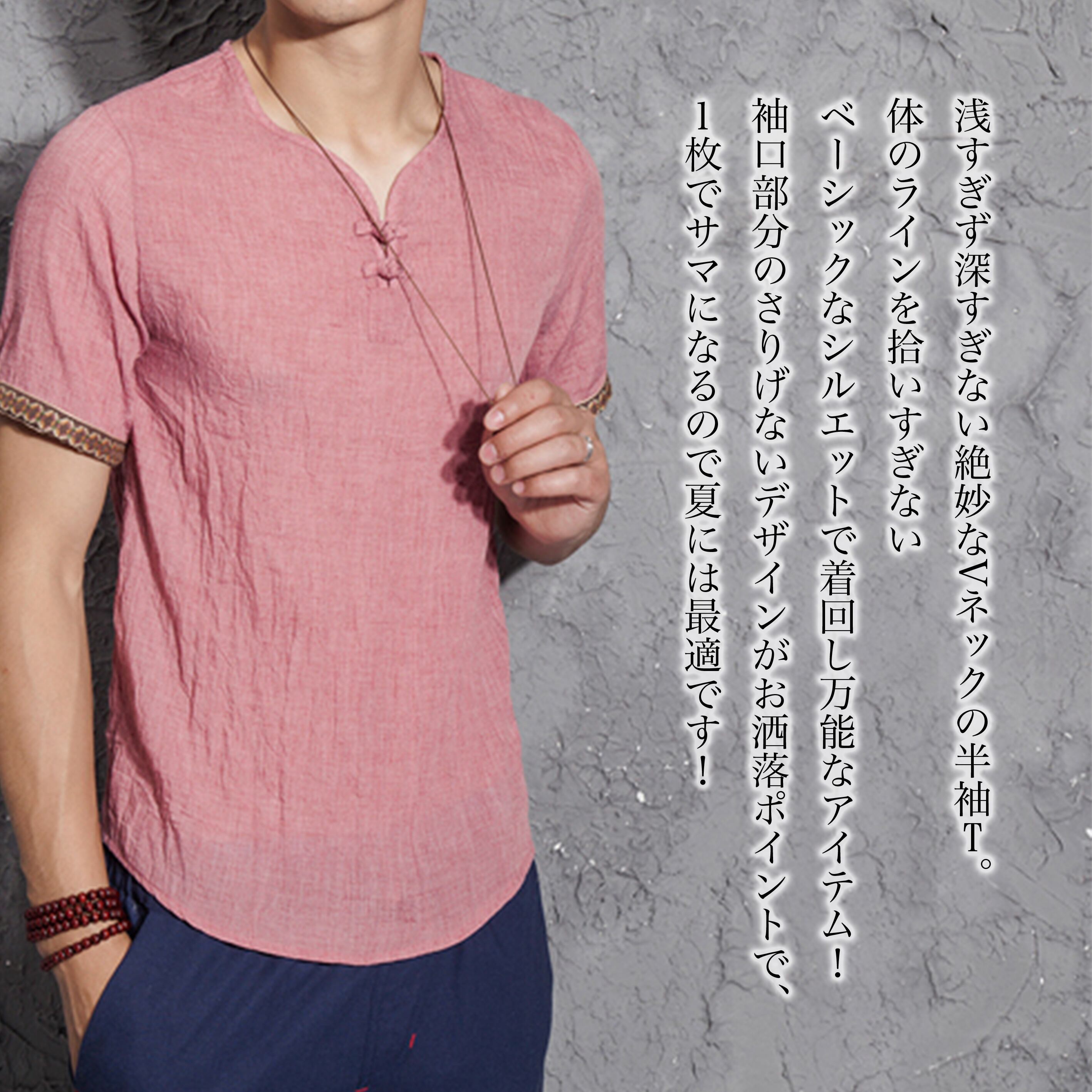 送料無料 VネックリネンTシャツ メンズ Tシャツ litm-137